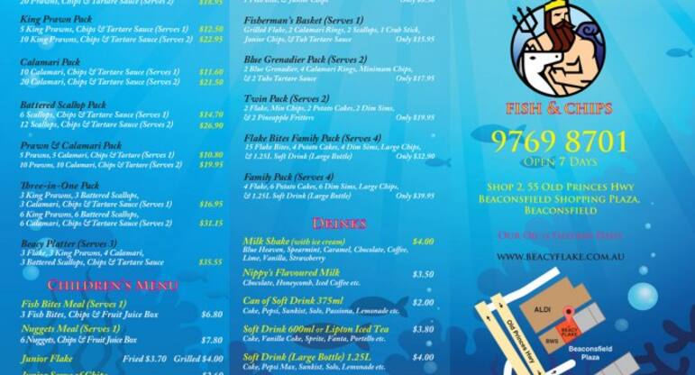Chips in Berwick City of Casey. Beacy Flake Menu Serves Fish and Chips. View the full menu from Beacy Flake Fish And Chips in Beaconsfield 3807 and place your order online.